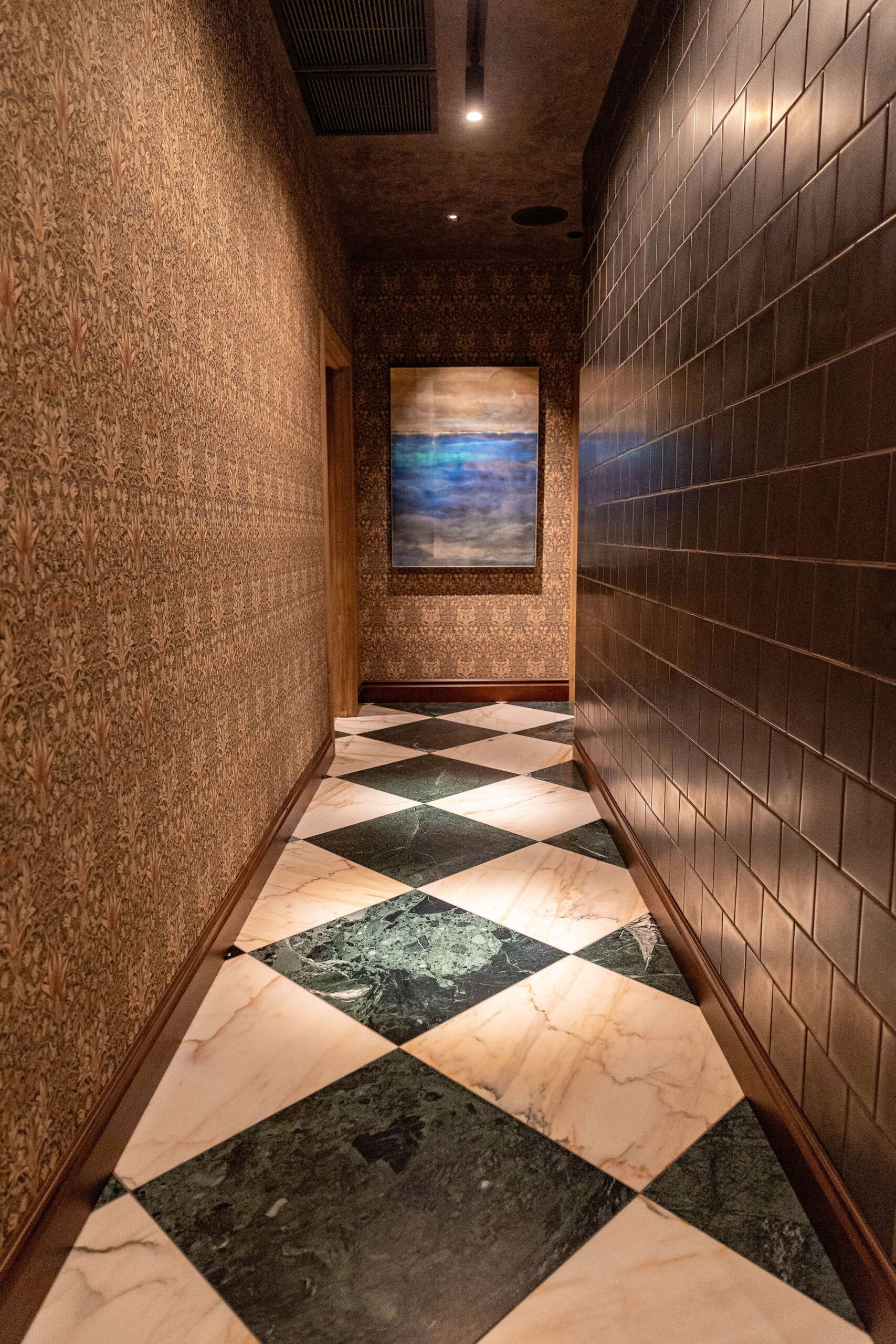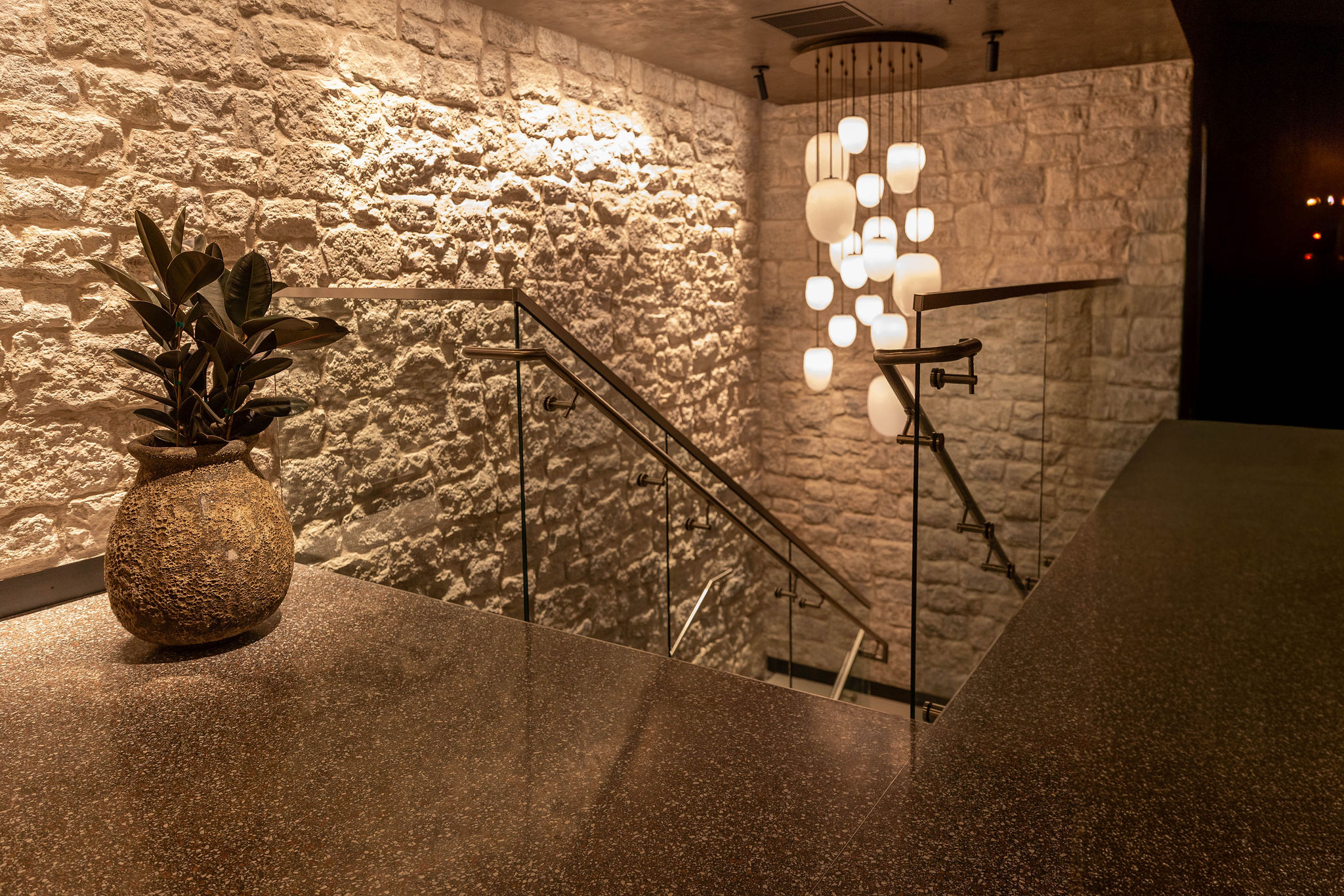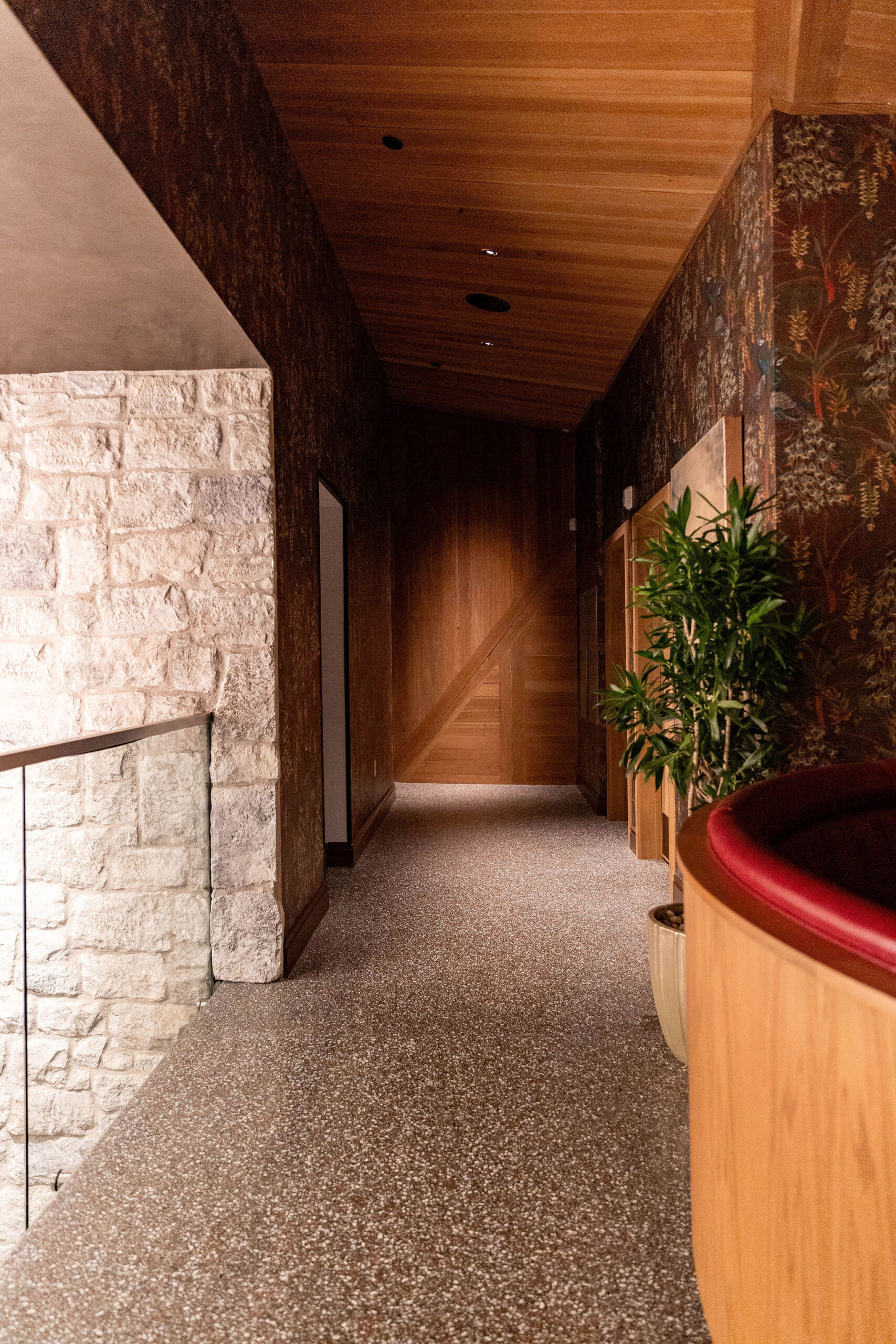 Premium Finishes and Imported Materials: High-end materials define the guest experience throughout Pinyon. Imported marble flooring from Portugal grounds the main levels in elegance, while terrazzo flooring on the third floor adds durability and visual texture. Venetian plaster ceilings by Hopper Finishes bring a handcrafted, European-inspired finish that elevates the overall ambiance.
