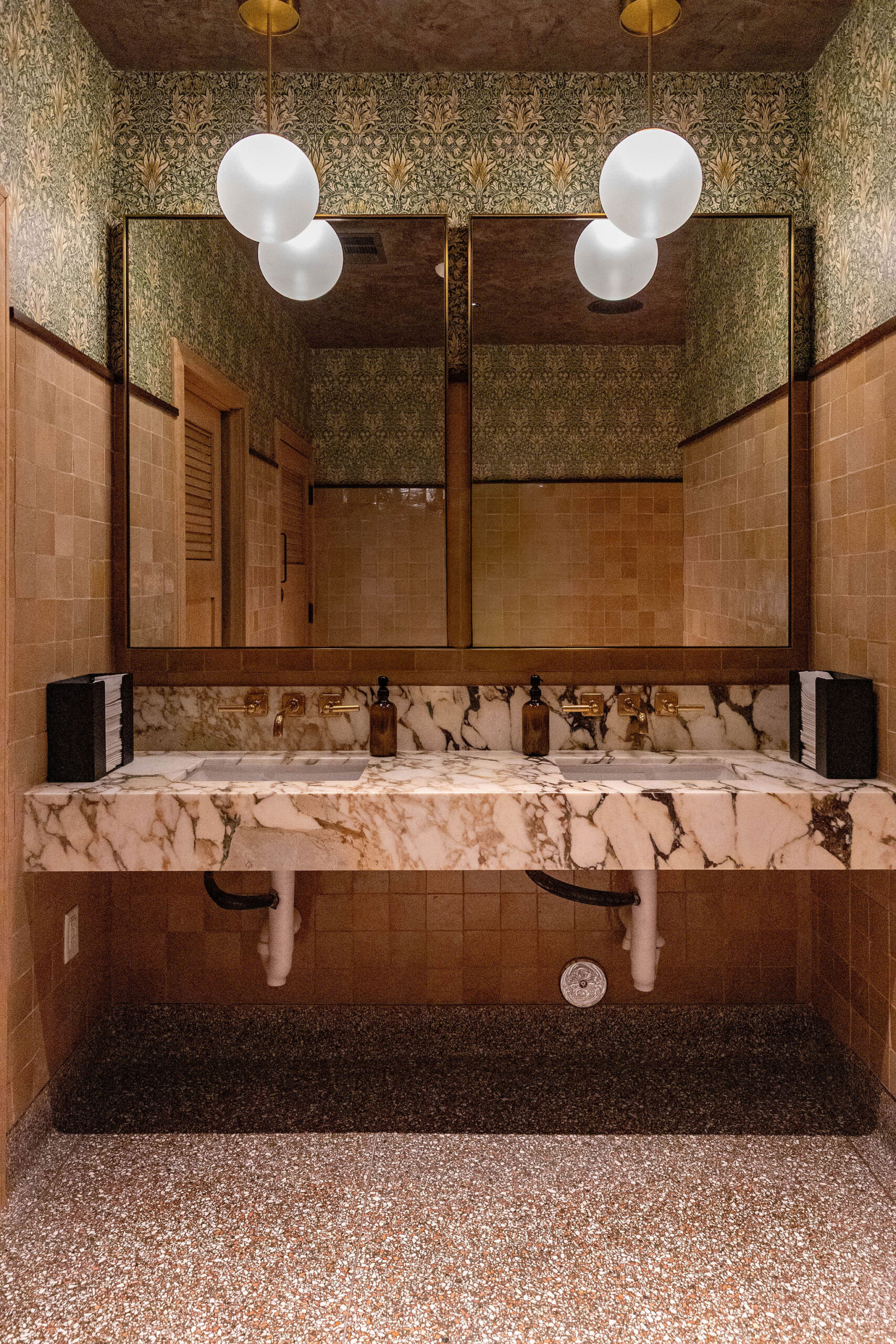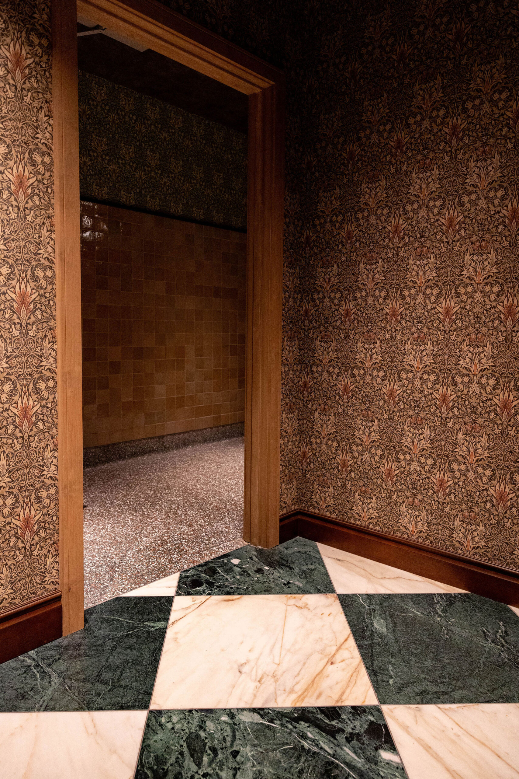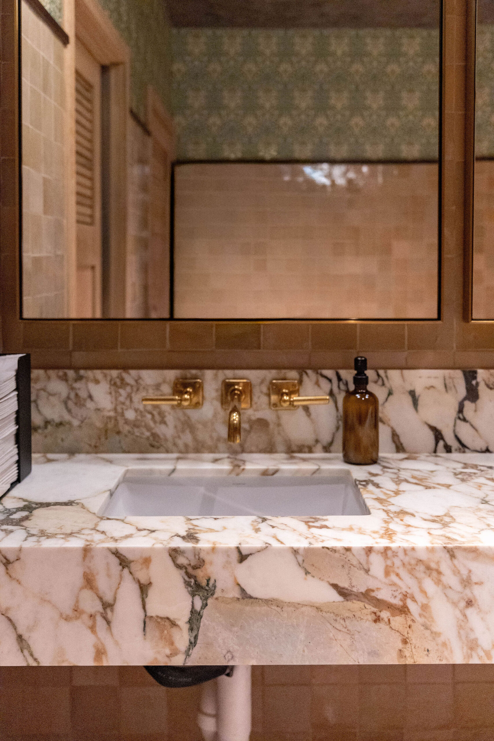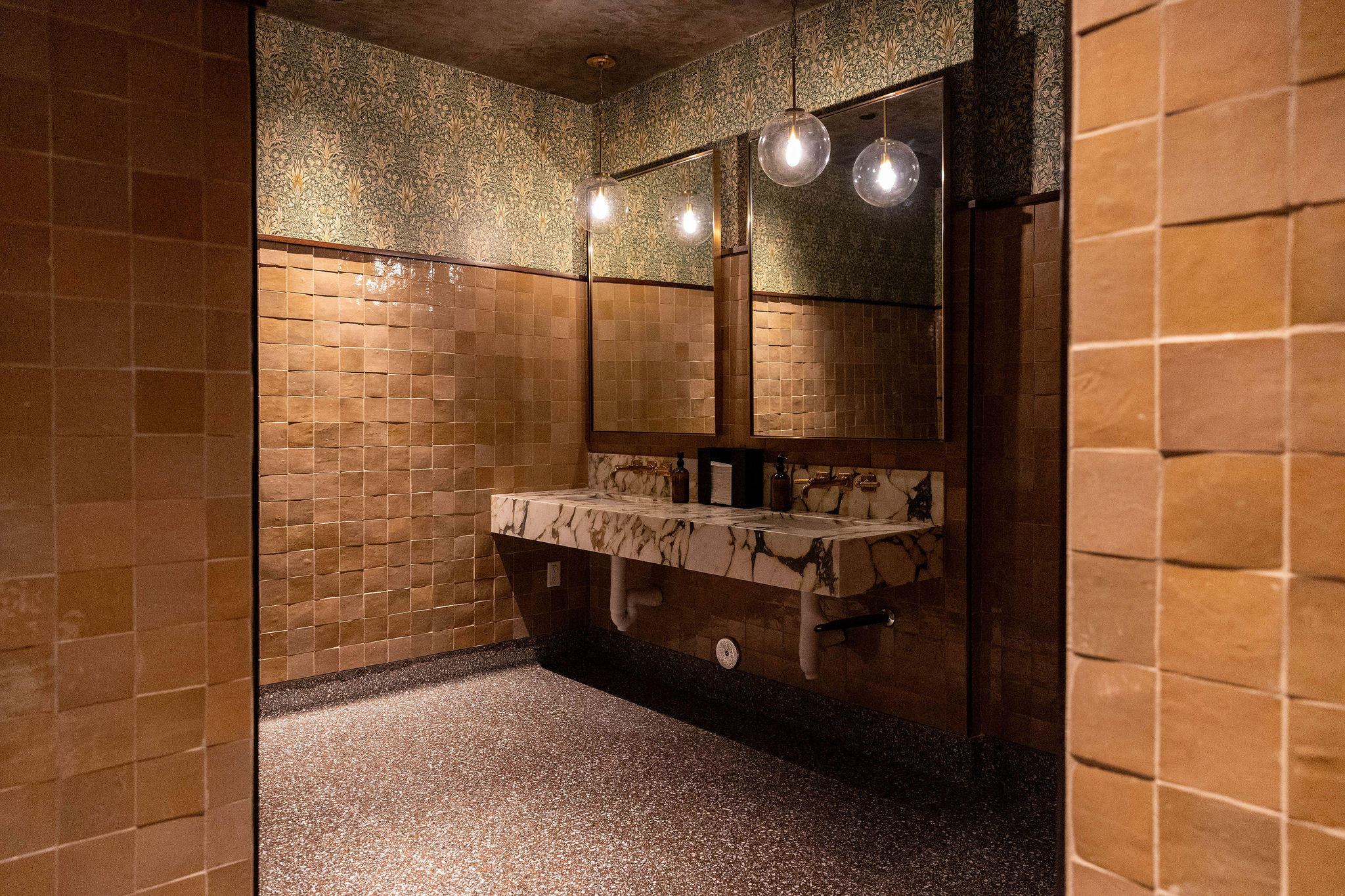 Premium Finishes and Imported Materials: High-end materials define the guest experience throughout Pinyon. Imported marble flooring from Portugal grounds the main levels in elegance, while terrazzo flooring on the third floor adds durability and visual texture. Venetian plaster ceilings by Hopper Finishes bring a handcrafted, European-inspired finish that elevates the overall ambiance.